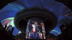 東方明珠零米大廳巨大的環(huán)形穹頂內(nèi)壁上含有棱紋,整個投影空間為雙層結構。它的立面很大,但離觀眾很近,因此需要高分辨率的內(nèi)容。我們不得不在技術設置上進行大量的實驗。我們還必須考慮到動畫的不同視角,因為觀眾可以從兩個不同的層面去觀看,每個層面都提供了不同的角度。我們必須盡可能避免失真。