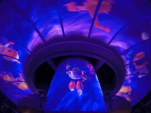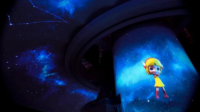 投射區(qū)域以三根圓柱體為界,將立面影像與穹頂影像做聯(lián)動,結合空間構造,在畫面制作中融入視錯覺元素的同時,克服畫幅巨大,投射空間復雜,影像易變形等技術難點,完美演繹了五個可愛的IP形象的四重絢麗夢境,上演了一場穿越時空、城市歷險等多種驚險刺激、神奇浪漫的視覺之旅。