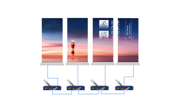 05P4支持多機(jī)級(jí)聯(lián),多臺(tái)P4可通過HDMI輸入輸出信號(hào)進(jìn)行級(jí)聯(lián)擴(kuò)展,完成多屏的拼接顯示。(廣州升信信息科技有限公司-LED顯示屏事業(yè)部www.fulisat.cn)